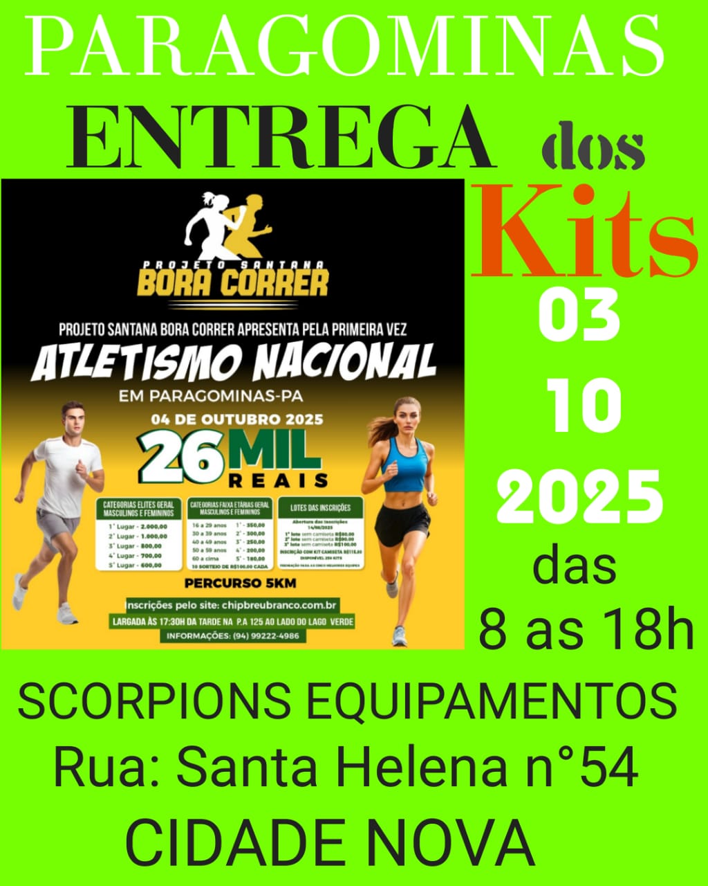 | R$ 90,00 | Geral (Número +Chip de Cronometragem) |